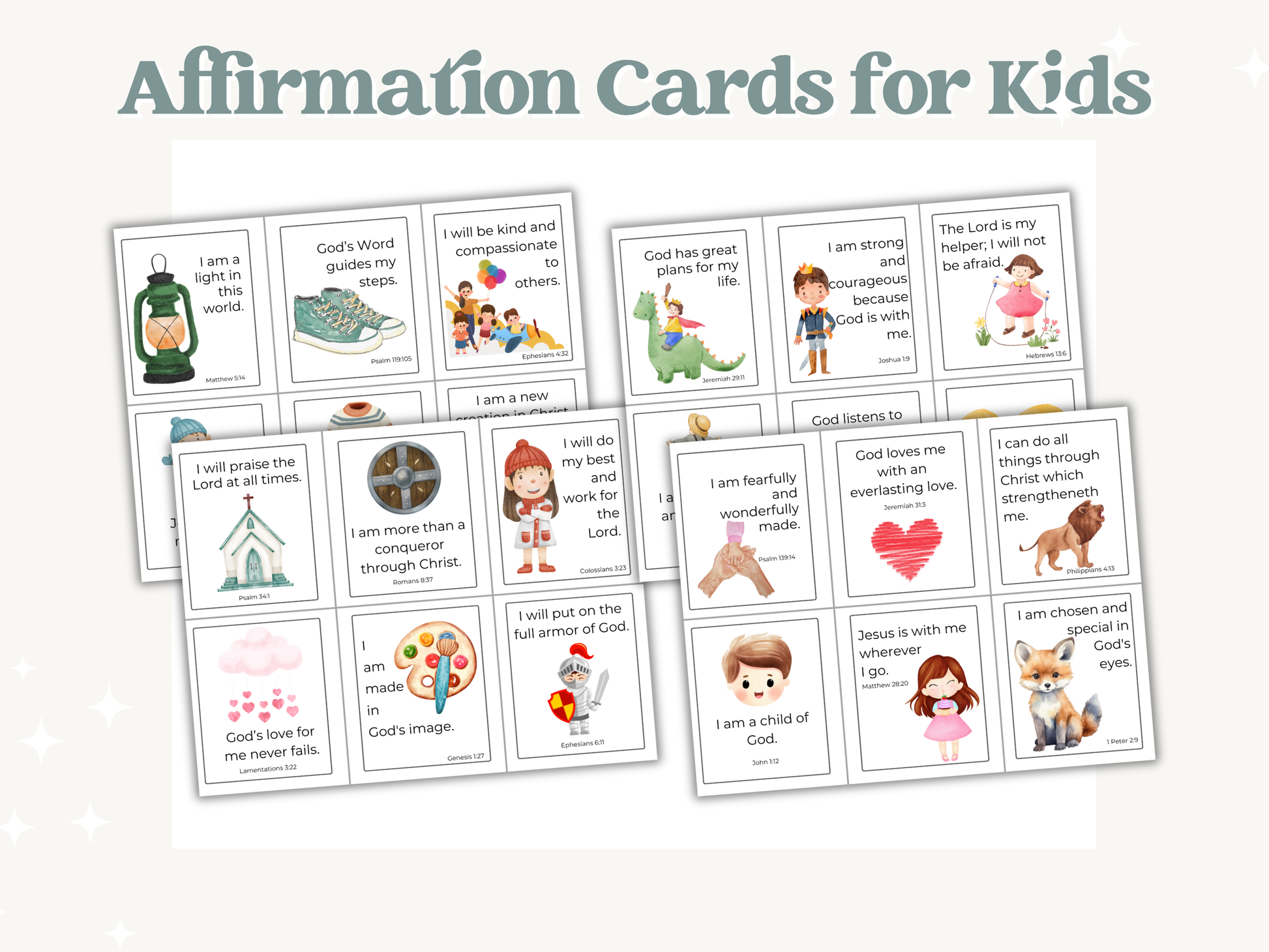Fun, colorful cards with Scripture-based truths that remind kids who they are in Christ—perfect for lunchboxes, morning routines, or quiet time.